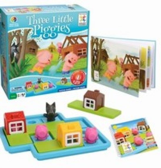 Smart Games har nok engang skabt et lærende, sjovt og udviklende hovedbrudsspil til én spiller. Three Little Piggies øver barnets koncentration, logiske tænkning og overblik. Det er samtidig et spil, der giver plads til at barnet selv kan bruge sin fantasi og skabe en fortælling og handling i forhold til det, der udspiller sig på spilpladen.