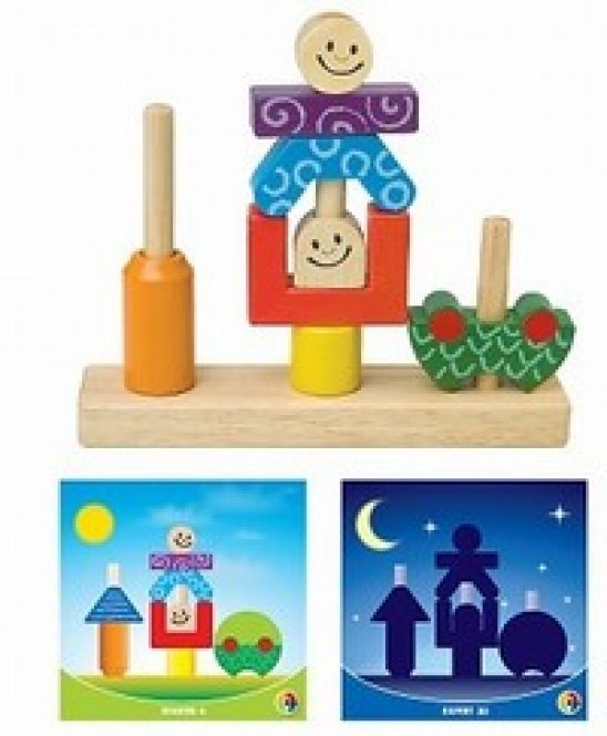 day & night er et udfordrende og lærerigt spil for de allermindste børn, og samtidig et spil der udvikler sig med barnet efterhånden som det vokser. Spillet er opdelt i day & night deraf navnet. Første del – day henvender sig til allermindste og nybegynderne. Opgaven er, at barnet sætter klodserne på træstativet præcis sådan som det er illustreret på den farvelagte udfordring. I night er de 24 udfordringer blevet vanskeligere idet barnet nu skal sætte klodserne på stativet ud fra en silhuettetegning.