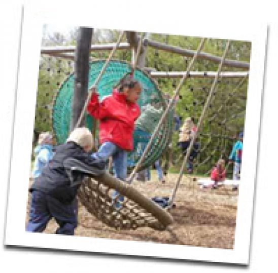 Offentlig pædagogisk ledet legeplads. Legepladsen består af en træpavillion med toilet, køkken og aktivitetsrum. Stort udvalg af spil, legetøj, computere mm. Udendørs findes indhegnet boldbane, sandkasser, vandtårn, legehus, borde og bæke, klatrefort med rutchebaner og bordtennisbord, Derudover tennisbane og gynger. Her kan gratis lånes cykler, mooncars mm.