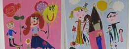 Man kan få den flotteste kunst ud af børnenes tegninger, hvis de tegnes på lærred og males op af mor eller far.